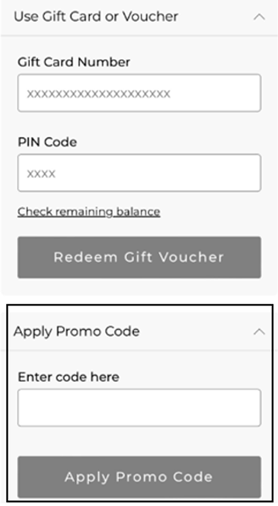 Továbbra is fizethet ajándékkártyával vagy eVoucherrel, ha promóciós kódot használ.