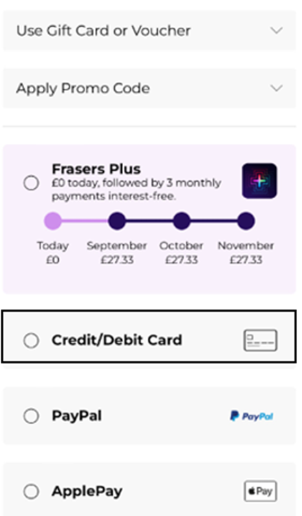 Ha egy harmadik féltől származó érintésmentes ajándékkártyát használ, kérjük, válassza a "Hitel/betéti kártya" lehetőséget, és adja meg az érintésmentes ajándékkártya adatait, ahogyan egy bankkártyával/hitelkártyával tenné.