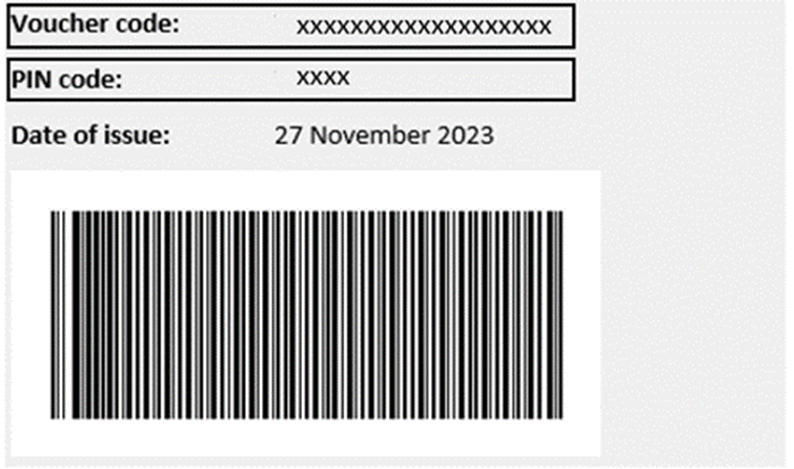 Ha eVouchert használ, az azonosítót és a PIN-kódot a kapott e-mail szürke dobozában találja. Valahogy így fog kinézni: